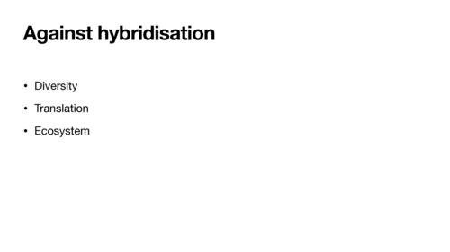 Second I want to argue that it undermines the skill of translation that is the grease in the machine of multidisciplinary teams. In translating between our disciplines we spar with each other, and we put that into practice when we engage with the wider organisation. I was at a panel yesterday where someone argued that translation was the critical skill for successful digital transformation. It’s a slightly silly question, but it’s a good answer, because transformation is a continual negotiation between worldviews that don’t really understand each other. The echo chamber of your own head will not equip you for the actual work.